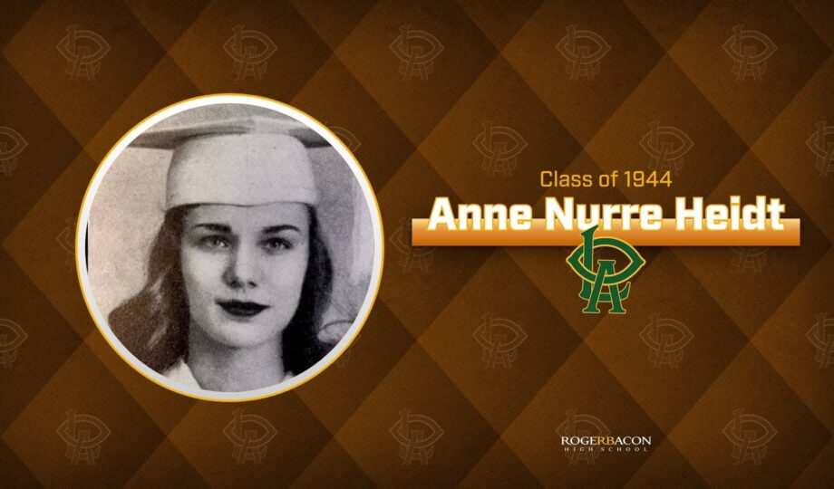 Anne Nurre the daughter of Joseph & Theodora (Juengling) Nurre, grew up in St. Bernard. Anne, along with her two sisters, attended Our Lady of the Angels High School. Dorothy Nurre (Broad) graduated in 1942. Anne graduated in 1944, and Marilou Nurre (McMaster) graduated in 1955.