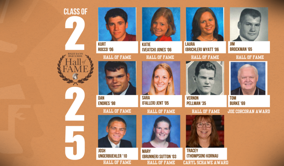 The 2025 Roger Bacon Athletics Hall of Fame Induction Ceremony will be held on Saturday, November 15th in the Thomas J. Fogarty Center. Doors will open at 5pm and dinner will begin at 6:15pm. The program will start at 7pm. Your ticket includes your food and drinks for the evening. Congratulations again to our Hall of Fame inductees and award winners!